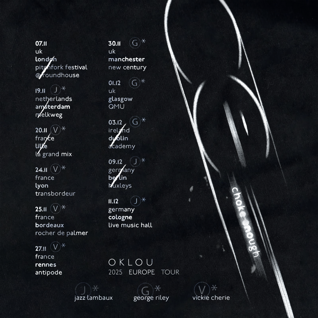 This November and December, Oklou tours Europe and the UK, with support from Jazz Lambauxx, Vickie Cherie, and George Riley. Buy your tickets now!